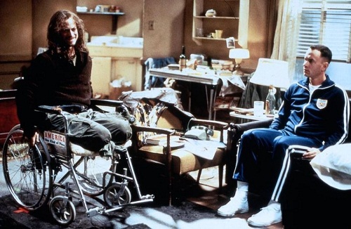 이 둘은 계속 엮인다. 이유가 있다. 포레스트 검프도 베트남 전쟁에 참전하는데 그때 중대장이 댄 테일러였다. 어느 날 작정 중 전멸을 당할 위기에 처했다. 그런데 미식축구를 잘했기에 달리기에 뛰어났던 포레스트 검프가 부대원들을 구해낸다. 사실은 부상병들을 돕기 위해서 그렇게 한 게 아니라 자신의 절친인 버바를 찾으려다 부상병들을 발견했고 구출한 것이다. 그렇게 구출한 사람 중에 댄 테일러가 있다. 그의 집안 내력이 있는데 큰 전쟁이 있을 때마다 자신의 조상들이 그 전쟁에서 죽었다. 그래서 자신도 그 베트남 전쟁에서 죽을 수도 있다는 걸 의식하는 것 같았다. 그렇게 자신의 이 베트남 전쟁에서 죽어야 하는데 포레스트 검프가 살려낸 것이다. 하지만 두 다리는 이미 잃었고. 차리라 거기서 운명대로 명예롭게 죽게 놔두지 하는 원망이 포레스트 검프를 향한다. 그 분노로 인해 둘의 인연은 계속 이어진다. 하지만 포레스트 검프는 그에게 대적도 방어도 싸움도 하지 않는다. 묵묵히 들어주고 옆에 있고 친구가 되어준다.