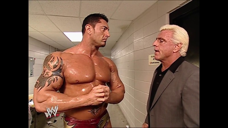 나와 같은 30대들은 잘 알 것이다. 그는 WWE 레슬러 출신이다. 예전 기억이 세록세록 났다. 우와 ~ 그때는 정말 엄청난 근육질에 다 부셔버릴 것처럼 강하게 생겼는데 17년 정도 지난 뒤에 보니 아저씨가 다 되었더라... 머리랑 수염을 저렇게 자르니 순둥순둥한 사람처럼 보였다. 오른쪽이 내가 알던 그 바티스타인데... 그땐 바티스투타라고 했던거 같기도 하고. 이렇게 무지막지하게 쎄보이는 사람이 영화계 쪽으로 갔구나. 더 락처럼 되는 것이가! 근데 이 영화로는 안 되겠다.